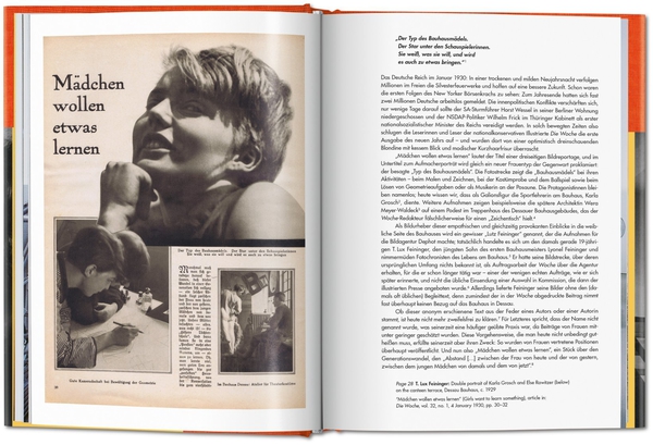 Elles, i moltes més dones, són les protagonistes de Bauhaus Mädels (Taschen), un treball ric a nivell visual que permet redescobrir més de vuitanta personatges que van fer estada a l’escola. Qui eren aquestes dones d’estètica trencadora i moderna que s’hi van enrolar, tot sovint desafiant l’ordre familiar establert? Les etiqueten com a Bauhaus gals i se’ns mostren irreverents, andrògines –triomfava el tall de cabell à la garçonne–, disfressades per a les festes i experiments escolars, o en actituds quotidianes: fumant, dormint, alletant una criatura… El llibre les posa en primer pla i parla en segon terme de les seves obres, dels seus mestres, companys o marits; alhora, fa una aproximació crítica a la Bauhaus que, tot i reivindicar la modernitat, arrossegava l’herència del vell món.