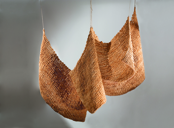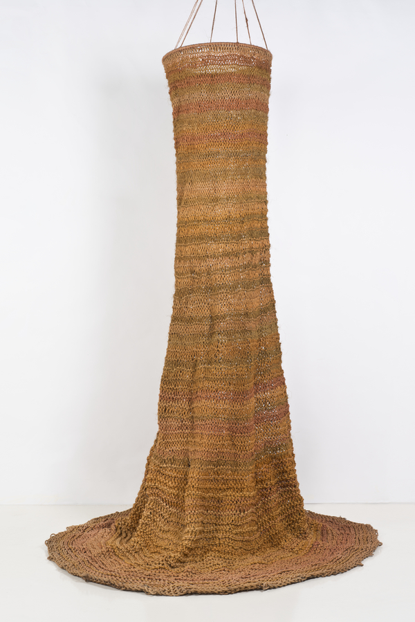 Quien nos ensancha aún más el universo de Aurèlia Muñoz es Sílvia Ventosa, hija del artista y conservadora de textil y moda del Museo del Diseño de Barcelona. Muñoz fue alumna de la Massana y pese a que se inició en el dibujo –al que volvió con fuerza al final de su vida– pronto se interesó por el arte textil. En un primer momento hacía collages con referencias a indumentarias litúrgicas y después tapices, donde evocaba una cierta abstracción y el deseo de despegar la pieza de la pared. A raíz de participar por primera vez en la Bienal de Lausana en 1965, entró en contacto con el movimiento de la Nouvelle tapisserie, que defendía la experimentación y las cualidades tridimensionales del tapiz (contemporáneamente, la fábrica Aymat de Sant Cugat también se abrió a proyectos más experimentales).