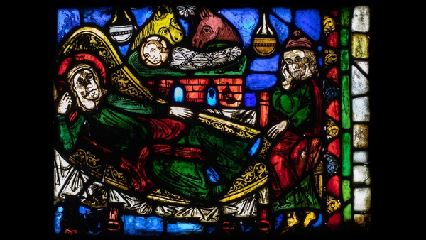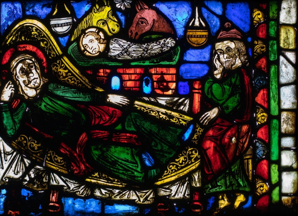 Des d’aquest punt de vista no ens ha de sorprendre gens que un dels plafons recuperats i de major qualitat artística sigui una Nativitat, i una Nativitat on la Mare de Déu ocupa gairebé tot l’espai, n’és la protagonista. El plafó té tanta personalitat i categoria creativa que destaca per damunt d’altres composicions del lot. Ofereix una disposició clàssica de l’escena, tan clàssica que immediatament tothom la podria relacionar amb la del Frontal d’Avià, també de la mateixa època, de finals del XII o començaments del XIII. Naturalment el preciosisme i detallisme de la fusta policromada té un altre llenguatge, tècnicament més sofisticat que el que el vitrall de la mateixa època pot oferir-nos. Un llenguatge que, en contrast, subratlla millor els estats d’ànim dels personatges, la mirada evasiva del pobre Josep, la fatiga física de Maria, la mirada del Nen Jesús, ja coronat amb el presagi de la creu, que sàviament sap identificar ja la seva mare. I també tenim la mirada pura, innocent, del bou i de la mula, dues bèsties aquí gairebé franciscanes que, en la seva simplicitat, reconeixen el Fill de Déu i ho celebren amb un posat tan innocent que recorda una bona il·lustració infantil de la nostra època. Jesús, com és habitual en les imatges de l’Edat Mitjana i posteriors, està ben lligat, potser amb una mena de corretja. Aquesta estranya momificació és un inequívoc tret d’època. Els infants acabats de néixer eren normalment faixats tot un any. Es creia, erròniament, que aquesta pràctica evitava l’aparició de qualsevol horrible deformitat a les extremitats i, sobretot, la possibilitat espantosa que esdevingués ni més ni menys que un quadrúpede. Ni el Fill de Déu s’escapava d’aquesta por.