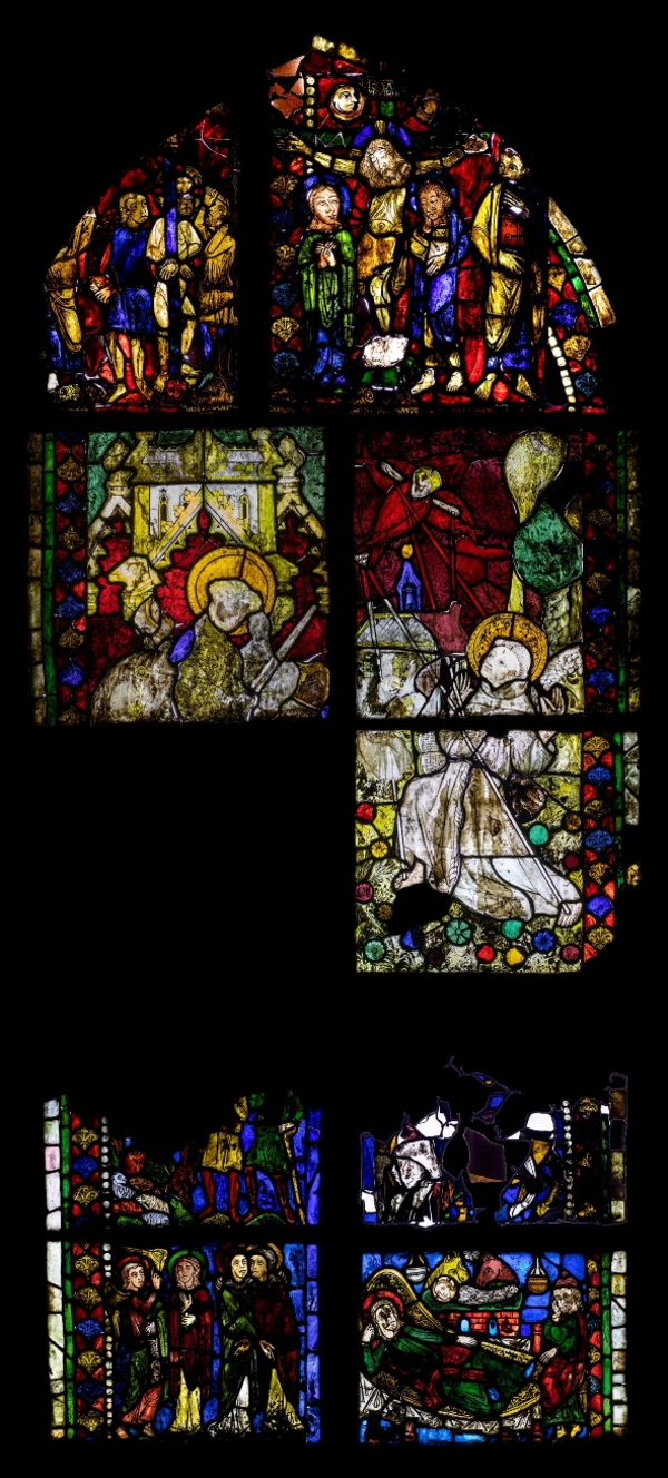 Algunes d’aquestes obres —perfectament individuals, concebudes com a esparses— estan considerades els vitralls figuratius més antics que conservem a Catalunya, segons els experts, ja que són visibles peces reaprofitades del precedent edifici romànic, datades a l’inici del segle XIII o el que és el mateix: de més de cent anys abans.