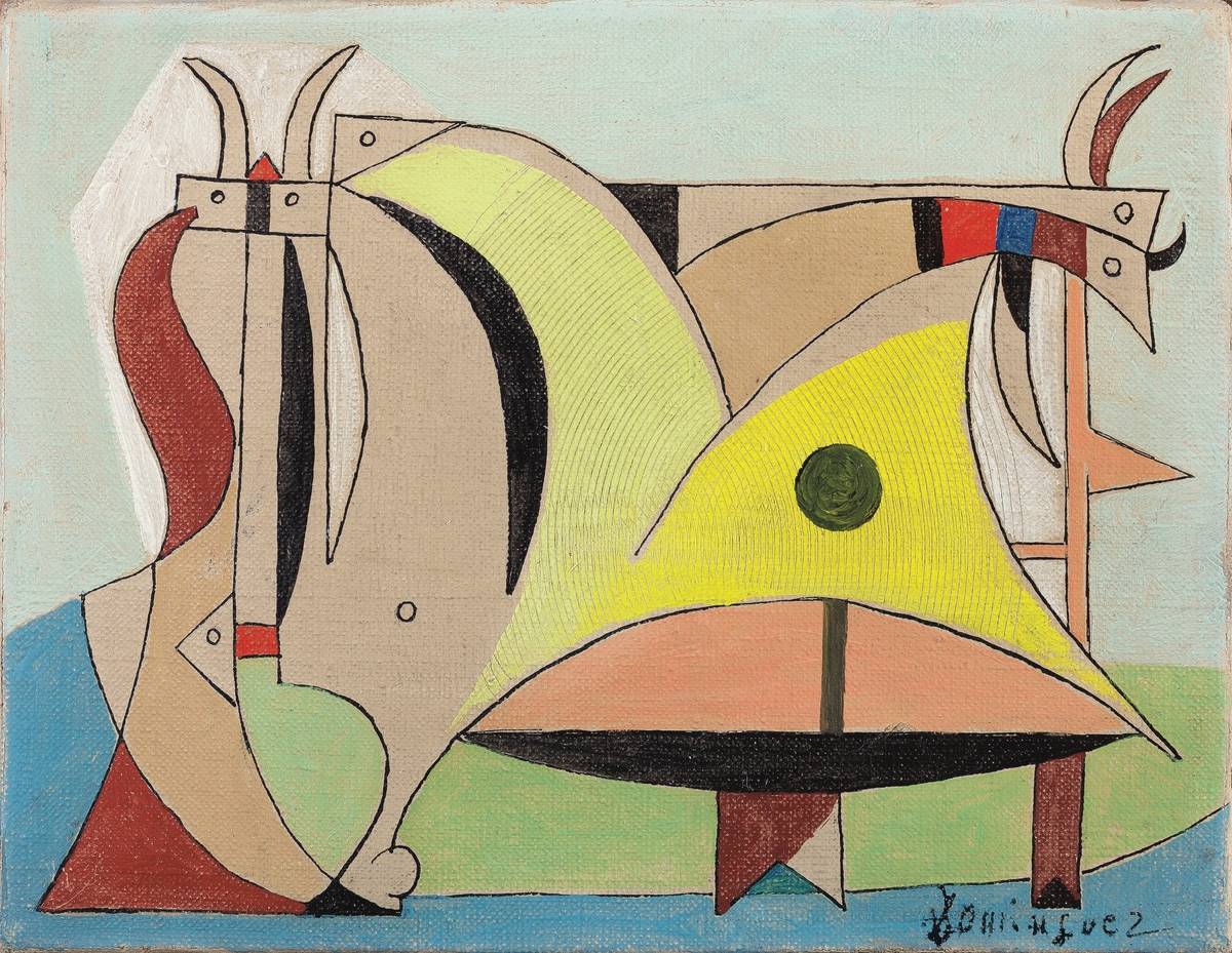 Abandonat el surrealisme dels anys 30, Domínguez sembla que balli amb el pinzell sobre el llenç, i traci una coreografia pròpia de ritmes elegants expressament descompassats. En aquestes obres hi bombeja, per una banda, una figuració geomètrica hereva d’una tradició picassiana que ha assumit sense màscares i, per l’altra, una sàvia de fluïts sensibles, hermètics a voltes innocents, que encobreixen, sempre, un vertigen interior. Amb tot, aquest període fou un parèntesi de calma poc habitual en la seva tumultuosa trajectòria vital i artística.