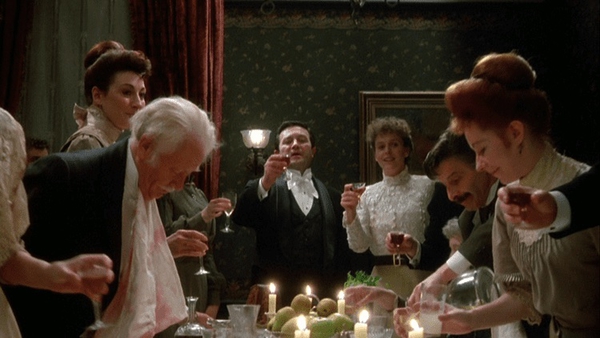 La primera vez que vi Dublineses (The Dead -los muertos- en el título original) experimenté una rara sensación durante casi toda la película. El relato transcurría en Dublín, durante una cena de amigos y familiares, en la fiesta de la Epifanía, el 6 de enero de 1904. La narración se limitaba a una sucesión de conversaciones y actos cotidianos, en apariencia triviales, y sin embargo había en el modo de contemplar todo aquello una rara fluidez, una sabiduría cinematográfica y vital fuera de lo común, un visible amor al cine, a la vida y a la gente diversa, felizmente real, con sus excesos y defectos, no adornada ni demasiado juzgada. Todo ello sugería una posibilidad de algo distinto y mejor. Y esa posibilidad se cumplía de un modo prodigioso en los últimos actos del relato.