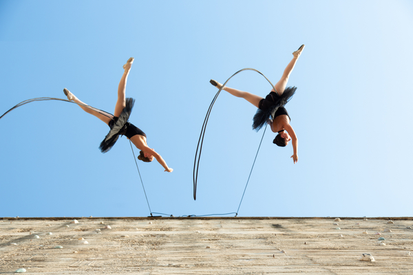 Con Finale, Delrevés saca la danza clásica de los teatros célebres, alejándola de los oropeles, el terciopelo y las butacas mullidas que constituyen su marco habitual, para llevarla al aire libre, al espacio urbano donde todos pueden disfrutarla sin sentirse cohibidos por el entorno. Y eso no es todo, porque Delrevés no es una compañía de danza común y corriente, sino una compañía de danza vertical. Es decir, que los interpretes no bailan en el suelo, sino en el aire, utilizando como escenario no una tarima de linóleo o parquet, sino la fachada de un edificio. “En la danza vertical la coreografía cambia en función de las arquitecturas, de sus curvas y salientes, de sus cristales y balcones, que añaden interés, pero también peligro a la propuesta”, explica Eduardo (Dudu) Torres, que fundó la compañía en 2007 en Barcelona junto con Saioa Fernández.
